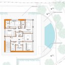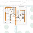 Se trata de una solución perfecta para quienes desean compartir su hogar con otra familia o para quienes buscan una inversión inmobiliaria. La villa está dividida en dos unidades simétricas, cada una con un garaje, un sótano y una sala técnica en el sótano. En la planta baja se encuentran los dormitorios y los cuartos de baño, mientras que en la primera planta están el salón, la cocina y otro cuarto de baño. También en este caso, cada unidad tiene su propia terraza en la planta superior.