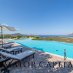 La villa se distribuye en dos niveles y está embellecida por materiales preciosos con decoraciones interiores caracterizadas por rasgos y colores típicamente mediterráneos.
