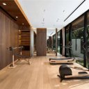 El corazón de la casa es un majestuoso salón con chimenea de vapor de agua, un elemento arquitectónico impactante. La cocina principal del chef, equipada con electrodomésticos Gaggenau, está flanqueada por una cocina de preparación con equipamiento Thermador, creando un escenario perfecto para eventos exclusivos y catering privado. Una sala de cine dedicada, un gimnasio privado y un estudio profesional completan la propiedad, diseñada para un estilo de vida completo y sofisticado.