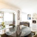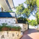 La casa tiene dos entradas independientes y un garaje de unos 50 metros cuadrados que actúa como tercer acceso a la villa. Hay una estación de carga para coches eléctricos. La parte restante del nivel, que ya ha sido condonada, puede formar una pequeña vivienda independiente, con cuarto de baño, habitación y un cuarto adicional. La planta baja a nivel de jardín, tiene acceso independiente desde el exterior y consta de hall de entrada y salón amueblado con una importante boiserie con tonos y diseño que combinan tanto lo clásico como lo moderno, chimenea en perfecto funcionamiento, mármol en la planta baja mármol gris Candoglia y parquet en el resto de la casa. Amplia cocina-comedor bellamente amueblada con parquet de roble de la marca Mardegan, con vistas a una gran terraza, vestíbulo y cuarto de baño en el nivel. En la planta superior P1, dos grandes dormitorios dobles, otro dormitorio más pequeño, dos cuartos de baño, lavadero, dos balcones. En la planta aún superior P2, hay un gran ático que es habitable en un 90%. Las escaleras interiores que conectan todos los niveles de la villa son de mármol blanco Calacatta verde.