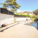 - Zona exterior proyectada con bancos y jardineras en mampostería con acabado fino (pietra serena y pizarra).