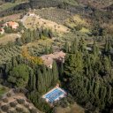 La piscina está situada en un punto estratégico del jardín desde el que podemos disfrutar del paisaje toscano circundante, enmarcando la Iglesia de San Giusto, un conocido punto de interés turístico desde el que también se toman fotografías que se incluyen en los típicos calendarios temáticos de la “Toscana“.