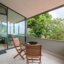La propiedad, totalmente renovada con materiales de primera calidad, destaca por su refinada arquitectura y su estilo contemporáneo. La entrada se abre a una elegante zona de estar de planta abierta, compuesta por un salón, un comedor y una cocina de generosas dimensiones. En la entreplanta se encuentra la zona de noche, compuesta por dos dormitorios con baño en suite, un estudio y un lavadero.