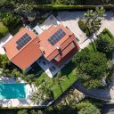 Excelente equipamiento técnico: instalación fotovoltaica de 8,5 kWh, descalcificador de agua sanitaria y potable, reservas de agua de 4.000 litros para uso doméstico y 40.000 litros para riego, ventanas y puertas blindadas, sistema integral de videovigilancia, parquet macizo de estilo italiano y mármol Calacatta Oro, aire acondicionado por conductos frío/calor Daikin y enfriadora de agua sanitaria con acumulador.