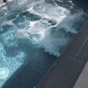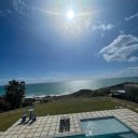 En el exterior, dos piscinas se abren hacia el horizonte: una más grande, con una pequeña playa, y una bañera de hidromasaje panorámica, perfecta para dejarse llevar mientras el sol se pone sobre el mar. Bajo el cenador de madera, las cenas se convierten en rituales, acompañadas por los colores del cielo y el aroma de la brisa marina.