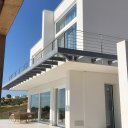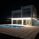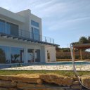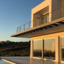 La villa de nueva construcción es luminosa, elegante, esencial. Las grandes ventanas correderas desaparecen en el suelo, dejando entrar el paisaje y creando una continuidad natural entre el interior y el exterior. Los espacios están pensados para el confort y para compartir: un salón acogedor, una cocina con isla donde el día empieza despacio y la noche continúa sin prisas.