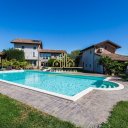 En el exterior, una espléndida veranda invita a largas veladas en compañía, entre los aromas de madera y piedra que emanan del rincón de barbacoa con horno, mientras que la piscina -con vestuarios y zona dedicada- se convierte en el escenario de jornadas inolvidables.