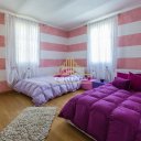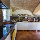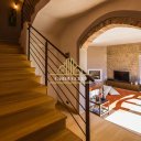 La primera vivienda se abre con un gran salón, donde la chimenea y las cristaleras crean un ambiente envolvente, lleno de luz y calidez. La cocina, con sus históricas bóvedas de ladrillo, cuenta historias de convivencia y tradición. En la planta superior, el dormitorio principal ofrece un auténtico sueño: una bañera de hidromasaje a ras de suelo, un vestidor y un panorama que se pierde entre el verdor del parque y la magia de la piscina. Todas las habitaciones están diseñadas para acoger momentos de bienestar, culminando en la planta ático, donde la sauna y el baño turco transforman cada día en una pequeña escapada de lujo.