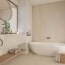 Cada unidad se desarrolla en 2 niveles sobre rasante y un nivel de sótano utilizado como garaje y sala técnica. La formulación actual de los espacios interiores prevé 3 dormitorios, 3 baños y una gran sala de estar con cocina, habitaciones amplias y bien iluminadas con un diseño moderno y elegante. Cada unidad tiene un gran jardín plantado con riego automatizado y una piscina infinita privada con zona de jacuzzi. Para ambas soluciones se ha previsto un ascensor interior. Posibilidad de personalizar los espacios interiores.