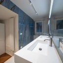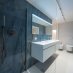 Les salles de bains, entièrement finies, se distinguent par leur design raffiné : de grandes surfaces lumineuses, un revêtement effet marbre dans la délicate nuance du papier de sucre, des veines chaudes et des détails contemporains créent des espaces intimes au caractère raffiné et relaxant.