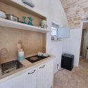 Au deuxième niveau, il y a trois lamias, qui sont des constructions rurales avec des toits voûtés. La première lamia offre trois lits organisés en un lit double, un lit simple, une salle de bain et une kitchenette. La deuxième lamia offre deux couchages avec un lit double, une kitchenette et une salle de bains. Enfin, la dernière lamia offre quatre lits organisés en deux lits doubles, une salle de bains et une kitchenette. Ces unités sont idéales pour ceux qui recherchent l´indépendance et la praticité.