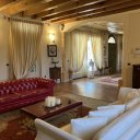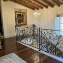 Un charmant escalier avec une rampe en fer forgé nous conduit au premier étage où nous sommes accueillis par une salle de lecture qui donne sur la grande loggia panoramique finement décorée.
