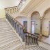 Depuis la Via Roma, la porte d´entrée mène au hall d´entrée et, de là, à l´escalier monumental qui mène au premier étage.