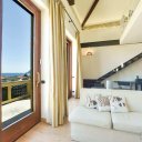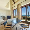 1er niveau : entrée sur séjour/salle à manger avec grand balcon/terrasse avec vue sur la mer, grande chambre double avec accès à la deuxième petite terrasse, cuisine avec petite terrasse + salle de bain avec douche et fenêtre ;2ème niveau : chambre double principale avec salle de bain privée avec douche et fenêtre ;