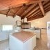 La cuisine habitable avec îlot est grande et fonctionnelle.