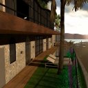 DESCRIPTION:intérieurement la solution se compose au premier étage d´un grand séjour avec cuisine ouverte et terrasse, au rez-de-chaussée d´un grand couloir utilisé comme séjour, de deux chambres doubles avec salle de bains privée et d´une fenêtre d´où l´on peut accéder au jardin d´environ 400 mètres avec piscine.