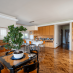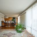 La propriété dispose également de trois places de parking couvertes. Mais laissons-nous séduire par la beauté de cette villa finie dans les moindres détails. En franchissant le portail d´entrée, nous sommes accueillis par la grande allée qui divise le jardin de devant, parfaitement entretenu. En entrant par la porte principale, le salon s´ouvre devant nous : d´un côté, un canapé confortable placé devant une grande cheminée qui réchauffe la pièce et permet de profiter de la vue sur le jardin avant grâce à la baie vitrée qui occupe tout le mur ; de l´autre côté, un espace utilisé plutôt comme salle à manger, avec une grande table et des meubles faits sur mesure. Mais la véritable valeur ajoutée est le parquet en bois d´olivier, posé en chevrons, qui rend la pièce encore plus élégante et sophistiquée.