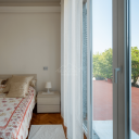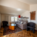 Par un escalier situé devant la cuisine et fermé par une porte blindée, on accède à la zone de la chambre principale, composée d´un petit salon avec accès à la grande terrasse de 40 m2 donnant sur tout le panorama environnant, d´une armoire et d´une grande salle de bains avec douche et baignoire.