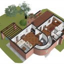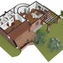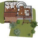 Devant la zone de vie se trouve le jardin luxuriant qui s´étend également à l´arrière de la maison où se trouve l´entrée principale. En correspondance avec la salle à manger, une grande terrasse adjacente au jardin crée une belle zone de détente partiellement couverte pour manger à l´extérieur, avec l´aide du four à bois pratique avec grill situé sur le côté.