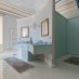 Le salon quadruple, lumineux et spacieux, est le centre de la villa, parfait pour les moments de détente et de socialisation. Avec 24 pièces disponibles, il est possible de créer différents espaces fonctionnels, adaptables aux besoins de la famille.