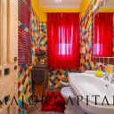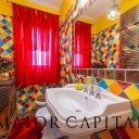 Les intérieurs sont caractérisés par des choix de couleurs élégants et des sols aux couleurs vives, qui ajoutent de la personnalité et du style aux pièces. Les tons chauds et neutres, harmonieusement assortis entre les murs et les colonnes, contribuent à créer une atmosphère agréable, sobre et équilibrée.