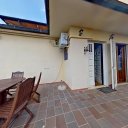 Accès par un escalier extérieur menant à une grande terrasse habitable, parfaite pour la vie en plein air.