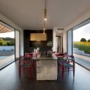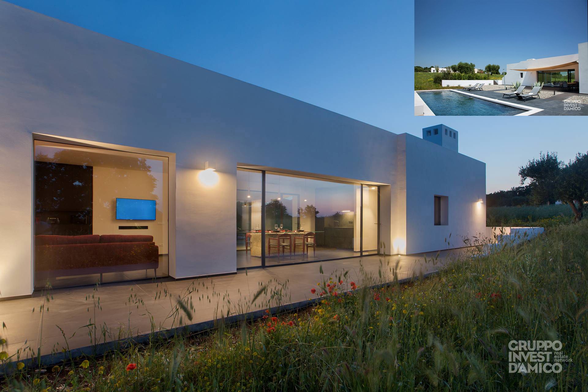 VILLA, de construction récente et de style moderne, située à Ostuni, Contrada Difesa San Salvatore, en position panoramique dans la Vallée d´Itria. Aménagée sur deux niveaux (rez-de-chaussée et sous-sol). Le rez-de-chaussée est utilisé comme habitation avec pergola, composée de3 chambres à coucheret d´un espace de vieopen spacede forme rectangulaire avec les deux plus grands murs fermés par des fenêtres, d´où il est possible de profiter en même temps de la vue sur la pergola-piscine, d´un côté, et de la vue sur la campagne environnante, de l´autre côté. De la zone de vie, divisée en salon-salle à manger avec mur équipé de cuisine et coin salon, on accède, d´une part, à un couloir menant à la salle de bains et à deux chambres, dont l´une dispose de sa propre salle de bains, et d´autre part, à une autre chambre avec salle de bains, cette dernière disposant également d´un accès indépendant depuis l´extérieur. Au sous-solse trouventles pièces destinées à desservir la villa, dont une pièce utilisée comme buanderie-wc avec lave-linge et sèche-linge, ainsi qu´un local technique-plant room de technologie moderne et à économie d´énergie, avec pompe à chaleur reliée à 1 panneau solaire, réservoir de stockage de l´eau qui provient d´un puits artésien auquel il est relié, système chaud/froid pour chaque pièce, système de domotique. Tout est de technologie moderne et à économie d´énergie.