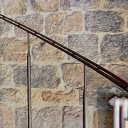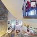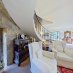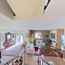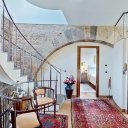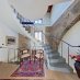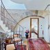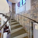 La combinaison d´éléments architecturaux originaux, tels que les murs d´enceinte originaux et bien conservés et l´arc de l´abside, avec des détails modernes et fonctionnels, crée une maison exclusive et fascinante. Mais regardons les espaces intérieurs : le salon est double avec une belle cheminée reposant sur un mur qui sépare l´espace de la cuisine avec rangement/buanderie et de la salle de bains. L´escalier est sans aucun doute l´élément qui attire le plus l´attention.
