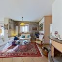 Réalisée en pietra serena, la rampe artisanale a été forgée à la main et assemblée sur place selon le projet de l´architecte. Au premier étage, on trouve un salon, une grande chambre double, un bureau, une deuxième chambre double actuellement utilisée comme bureau et une belle salle de bains en marbre rouge avec baignoire et douche. Au deuxième étage, qui est mansardé, le sol en terre cuite antique parfaitement conservé et traité reprend le salon, deux grandes pièces de plus de 20 m² et une salle de bains avec douche.