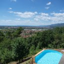 Villa historique à flanc de colline avec vue panoramique jusqu´à la mer, située à flanc de colline à Pian di Mommio, près de Viareggio en Versilia.
