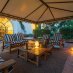 Por fim, uma zona de churrasco equipada com mesa e cadeiras para quem gosta de cozinhar na grelha.