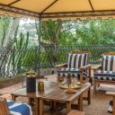 Tanto do amplo e luxuriante jardim como do terraço é possível desfrutar de um panorama de cortar a respiração, saboreando um aperitivo ao pôr do sol, ou à noite, quando todas as luzes da ilha brilham criando um cenário nada menos do que mágico.