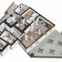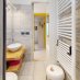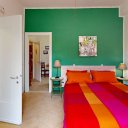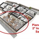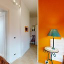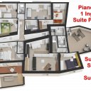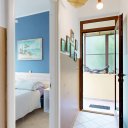 No primeiro andar, encontra-se o apartamento principal com quarto, casa de banho, sala de estar ampla e o terraço panorâmico com uma vista esplêndida sobre o vale de L´Aquila até ao mar. A segunda entrada dá acesso à área de hóspedes, composta por quatro suites com casa de banho privativa: a suite azul com sala de estar privativa, a suite verde, a suite laranja e a suite lavanda com um terraço duplo com vista para o mar.