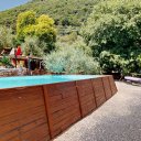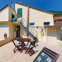 As áreas exteriores - o terreno de cerca de 6.000 metros quadrados contém uma grande área de estacionamento, pátios com mesas e bancos, caminhos de pedra, olival, citrinos, horta e grandes terraços com pérgulas viradas para o mar. Na zona junto à mata encontramos a bela sauna junto às mesas de pingue-pongue. No meio das oliveiras e do matagal mediterrânico, o pátio principal acolhe a piscina elevada com uma vista espetacular sobre as imponentes falésias dos vales de Perti e L´Aquila.
