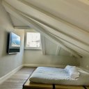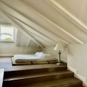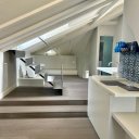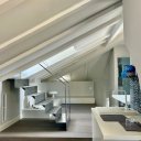 Uma escada moderna com janelas com vista para a cidade antiga liga a um sótão amplo com uma sala de estar e uma outra área de dormir com uma casa de banho, também com janela. Do sótão acede-se à altana: um terraço incrivelmente panorâmico, equipado com tomadas eléctricas e torneiras para água corrente, situado na cúspide do telhado, com vista sobre os telhados da cidade, a catedral de San Lorenzo, o porto e a Lanterna.