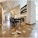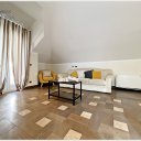 Entrada para o centro da sala de estar tripla composta por uma cozinha habitável com móveis feitos à medida, sala de jantar com lareira em mármore e sala de estar espaçosa. Existem 3 janelas francesas que dão acesso aos terraços e tornam o espaço extremamente luminoso e agradável. Teto em mansarda com alturas importantes que tornam o volume ainda mais arejado.