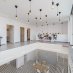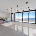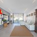 Espaçosa área de estar em plano aberto com janelas de vidro deslizantes do chão ao teto que unem os espaços interiores e exteriores num fluxo harmonioso