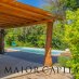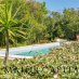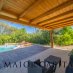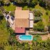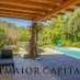 Atravessando um caminho de acesso, chega-se ao jardim bem cuidado que rodeia a propriedade e que apresenta uma bela piscina e áreas exteriores criadas especificamente para viver a casa na sua totalidade. Aqui, de facto, encontramos uma bela zona de refeições, sofás de alvenaria e churrascos criados em perfeita harmonia com a propriedade e o ambiente natural envolvente.