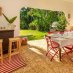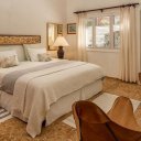 Arquitetura e design: A moradia distingue-se pela sua arquitetura elegante e intemporal, caracterizada por tectos abobadados majestosos que criam uma atmosfera de grandeza e amplitude, realçando a luz natural que inunda as divisões. O chão de mármore estende-se por todas as divisões, dando um toque de sofisticação e frescura, ideal para o clima tropical. O mobiliário, em estilo Boho, foi cuidadosamente escolhido com cores neutras e materiais nobres que se misturam harmoniosamente com o ambiente.