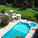Jardim 2.700 m2 com piscina enterrada aquecida (12,5 x 5,5 m) e hidromassagem.