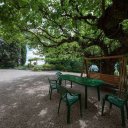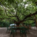 A autêntica e encantadora residência histórica está distribuída por três pisos principais e uma torre panorâmica, num total de mais de 900 metros quadrados, servidos por um elevador interno. Uma majestosa amoreira central cria uma pérgola natural que proporciona sombra e ambiente para refeições ao ar livre.
