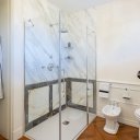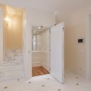 Através da escadaria muito elegante, novamente em mármore Calacatta combinado com um revestimento de madeira muito fino que realça as paredes (ou utilizando o elevador interno privado muito conveniente)chega-se ao primeiro andar e depois à área de dormir, realçada pelo muito elegante pavimento de madeira Teca, normalmente utilizado em iates de alto nível.