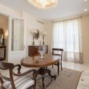 No rés do chão encontra-se talvez a parte mais peculiar da propriedade: um encantador salão de receção, ainda mais embelezado pelo precioso mármore Calacatta.