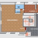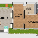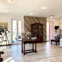 A moradia está dividida em três níveis para um total de 215 m2 no interior, composta da seguinte forma: PISO TÉRREO: ampla sala de estar com kitchenette, sala de jantar, duas adegas, casa de banho de serviço, arrecadação, jardim de cerca de 70 m2 com piscina infinita (equipada com água contra-corrente), duche exterior e ar de solário.