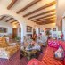 O primeiro andar abre-se para uma sala de estar quádrupla muito luminosa e elegante, com lareira, e também tem uma cozinha, três quartos e três casas de banho.