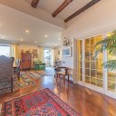O rés do chão é composto por uma sala de estar quádrupla, cozinha, lavandaria, casa de banho e apartamento de serviço.