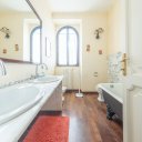 O segundo andar está dividido entre uma suite principal com casa de banho e roupeiro, e um escritório privado iluminado por duas janelas com vista para Roma e delimitado por uma prestigiada parede de madeira da era napoleónica proveniente de França, um verdadeiro objeto de arte que confere elegância e sofisticação.