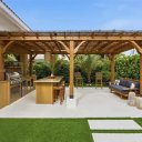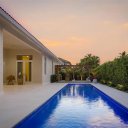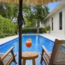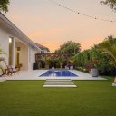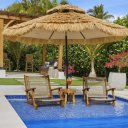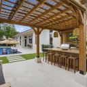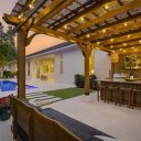 Os espaços exteriores foram concebidos como um verdadeiro oásis privado: uma piscina moderna, uma elegante pérgula coberta com zona de bar e um amplo jardim traseiro rodeado de vegetação garantem uma experiência exclusiva de bem-estar e entretenimento.