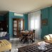 - Cozinha moderna com área de refeições e acesso ao pátio