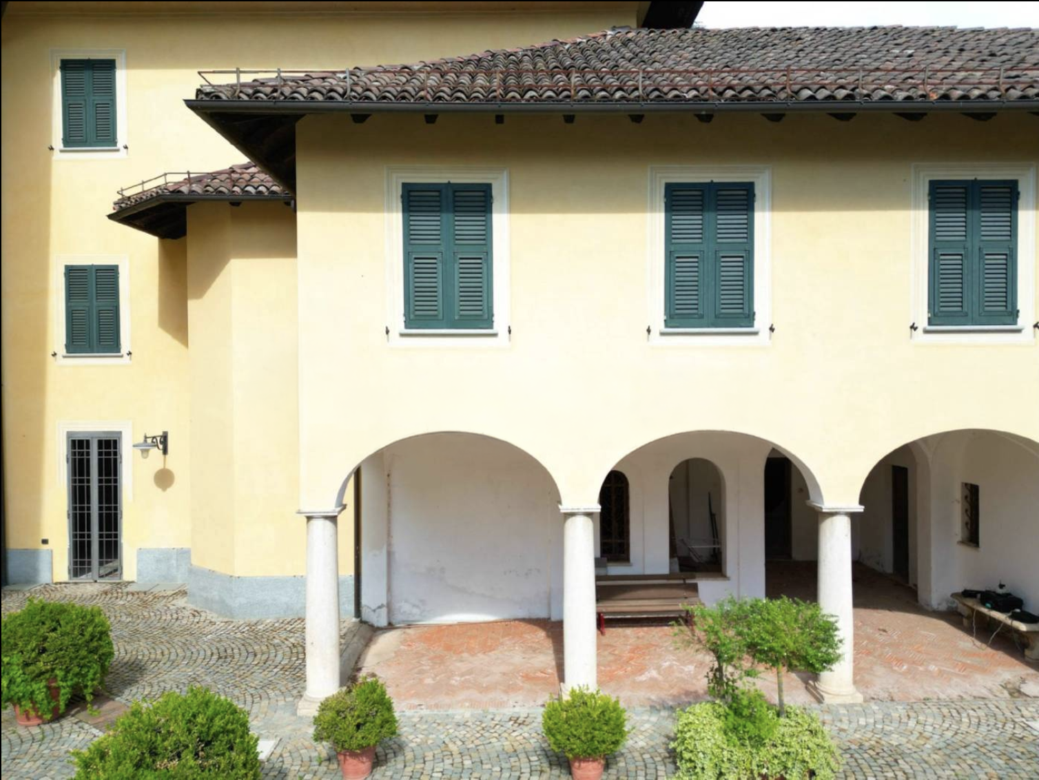 A propriedade, com mais de 2.700 metros quadrados, representa um autêntico exemplo da arquitetura rural piemontesa, com pórticos, celeiros, pátios interiores e uma encantadora igreja privada, um elemento de grande encanto e singularidade.